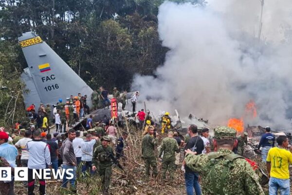 The Hercules military transport plane crashed minutes after take-off near Colombia’s southern border with Peru. Source link