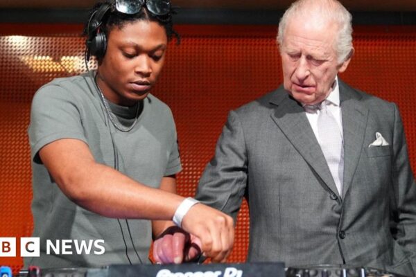 The King admits “trying to get a hang of it” while having a go at being a DJ during a visit to Manchester. Source link