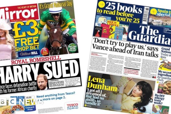 News of the Duke of Sussex being sued for defamation by a charity he co-founded dominates several of Saturday’s front pages. Source link