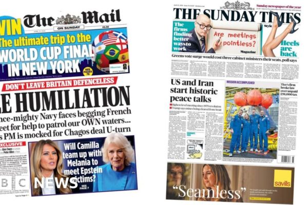 Some of the UK papers today follow Sir Keir Starmer shelving his Chagos Islands deal, and the historic Iran-US peace talks in Pakistan. Source link