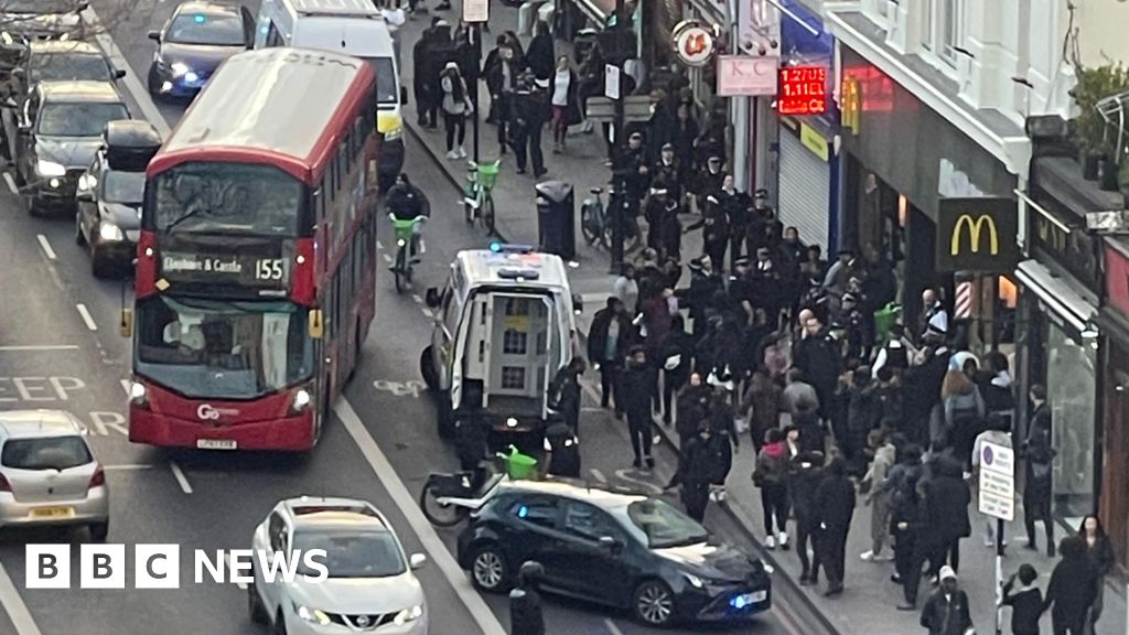 A large crowd of young people cause anti-social behaviour in Clapham High Street, says the Met.